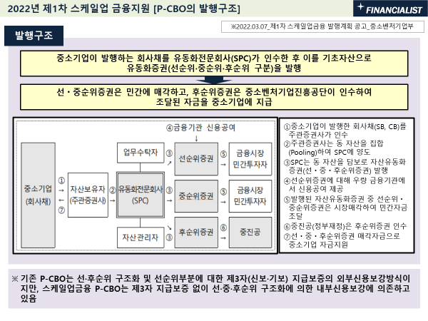 기존의 중소기업 지원 "P-CBO"는 다음과 같이 발행되고 있습니다.