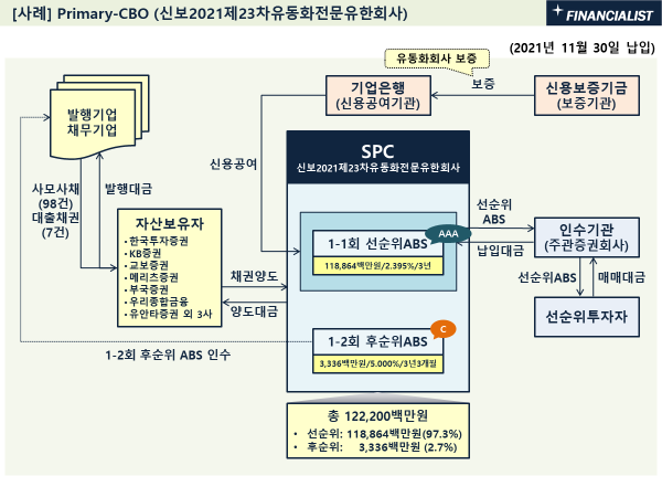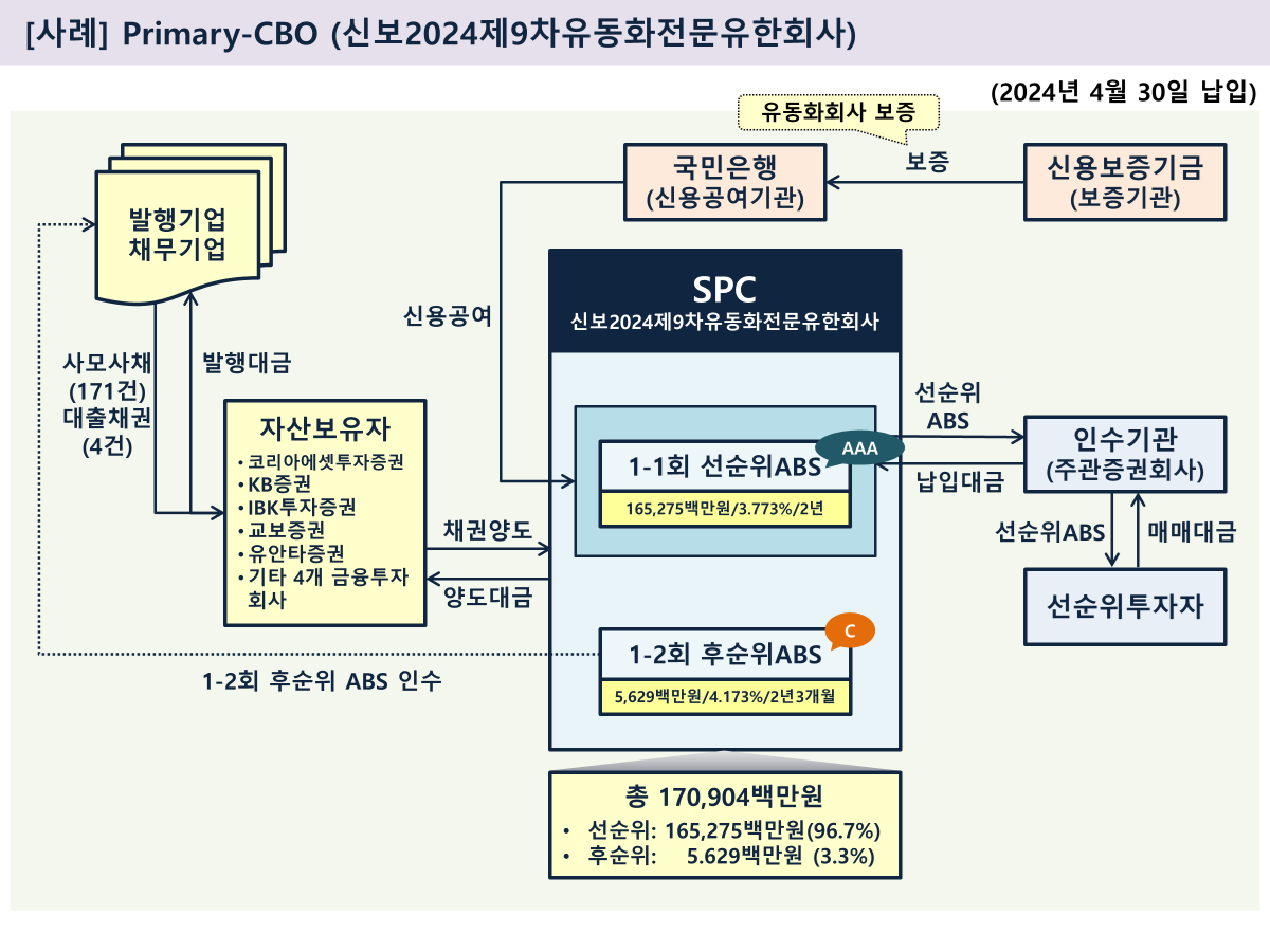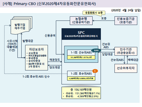 - 선순위 부분 담보로 발행된 채권 발행대금이 증권회사를 통해 중소기업에 유입